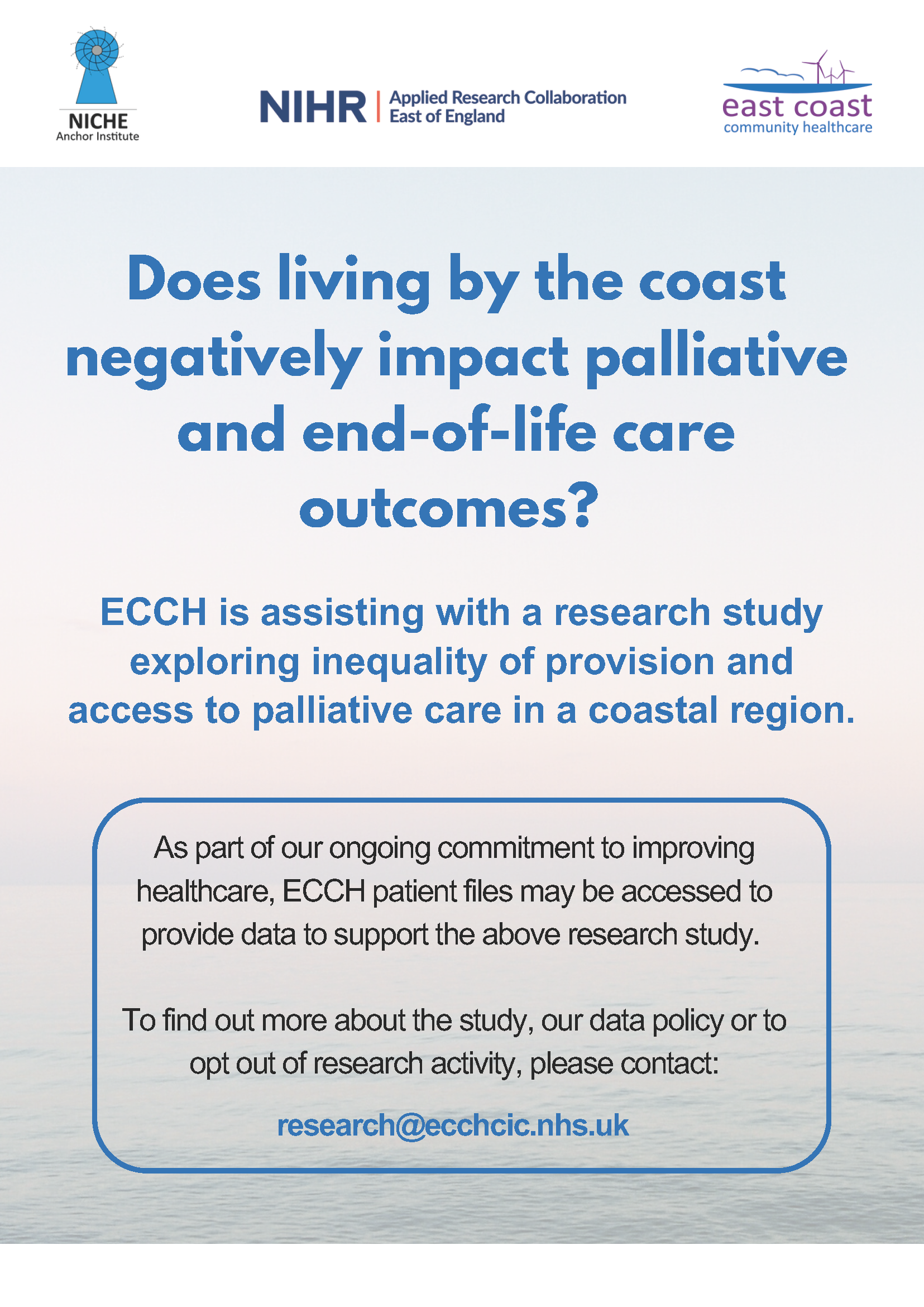 ECCH is assisting with a research study exploring inequality of provision and access to palliative care in a coastal region.