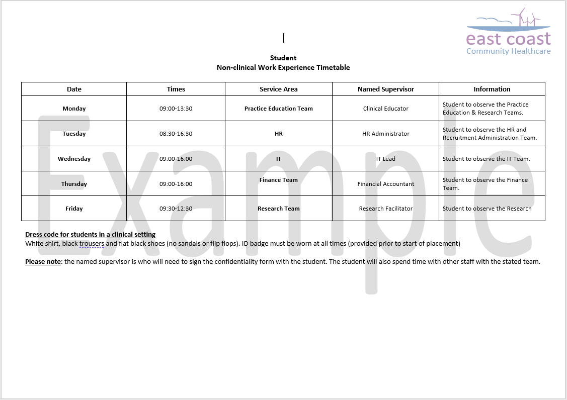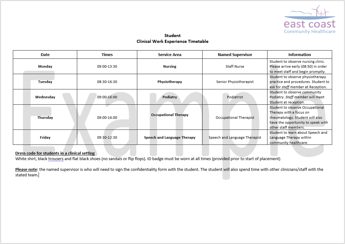 ECCH work experience programmes give an overview of community healthcare. Giving you an insight into a variety of roles allows you to think about which career path is right for you. Rotational placements are available in clinical and non-clinical services.