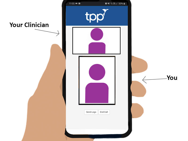 On a Smart Device (Phone/tablet) the user will see themselves in the bottom window and the clinician in the window above.